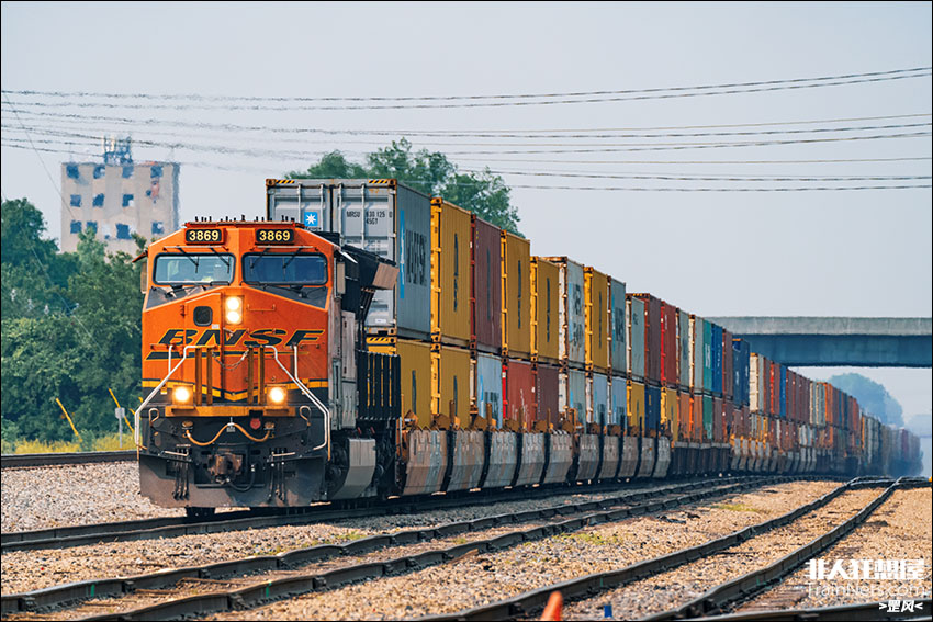 2023年6月3日。尚佩恩。加拿大国家铁路公司的Z194-91次集装箱专列行驶在尚佩恩线上。
