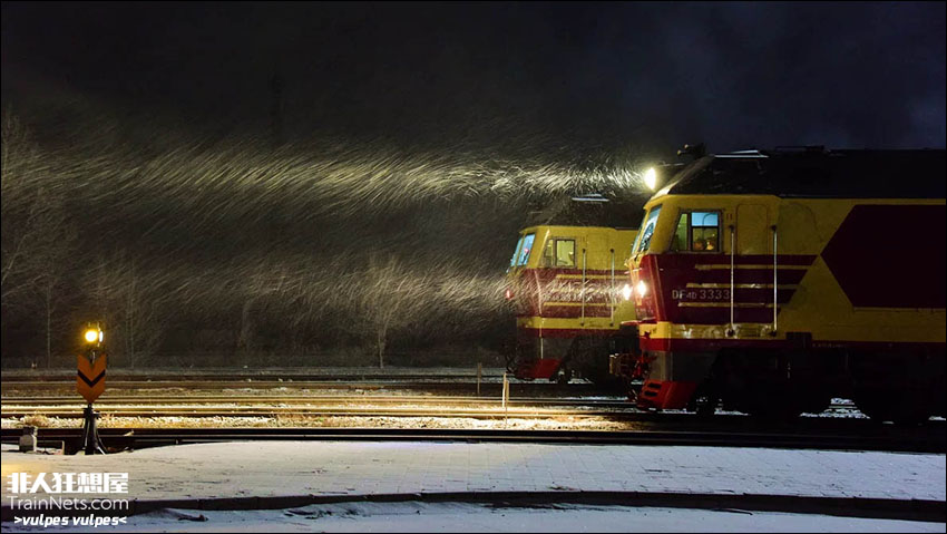 2015年12月。内蒙古克什克腾旗。集通铁路大板机务段,DF4DZ在雪中等待发车。