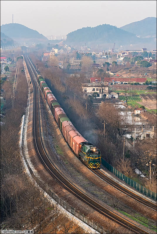 2017年1月13日。上局合段ND5-0329牵引X225次货列接近宣城站。(图/汪德成)