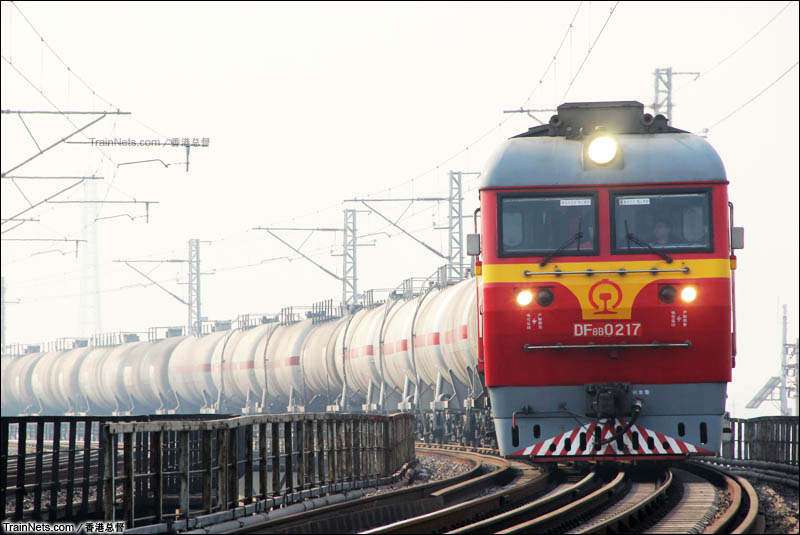 2017年2月12日。天津南环铁路,地方涂装的DF8B机车牵引油龙。(图/香港总督)