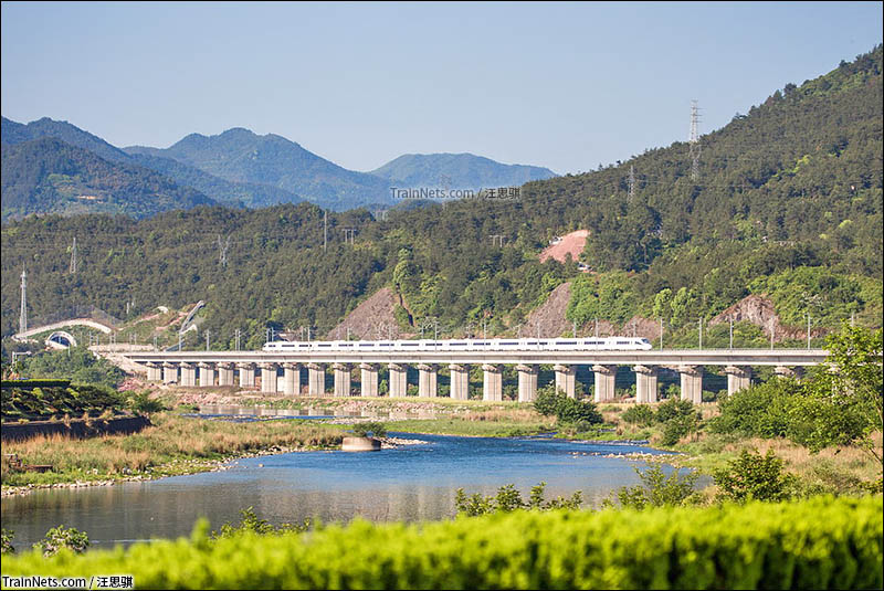 2017年4月30日。CRH380CL-5613担当G7626次(温州南-南京南)驶出丽水站,即将进入新下湾隧道。(图/汪思骐)