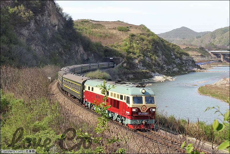 2016年4月29日。DF4D-0391牵引客车行驶在沈丹线南芬-下马塘区间。(图/范庚辰)