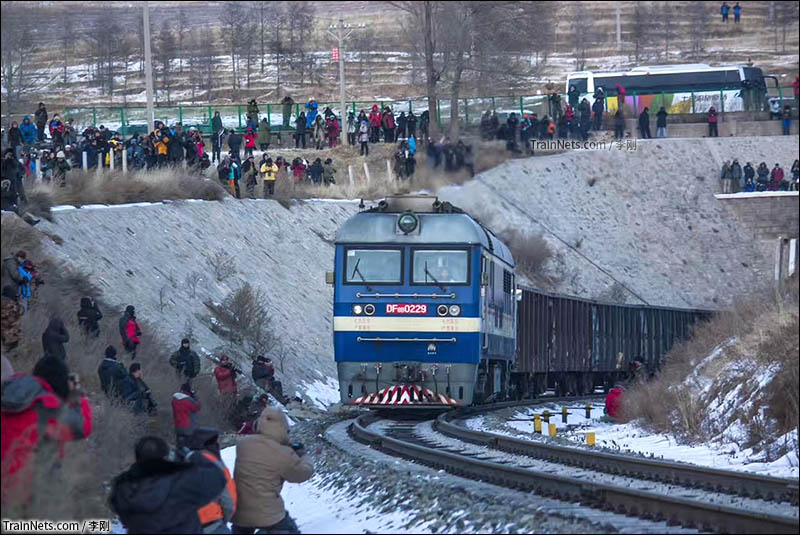 2012年元旦。集通铁路大坝梁隧道前,蒸汽机车摄影节上的意外之客。(图/李刚)