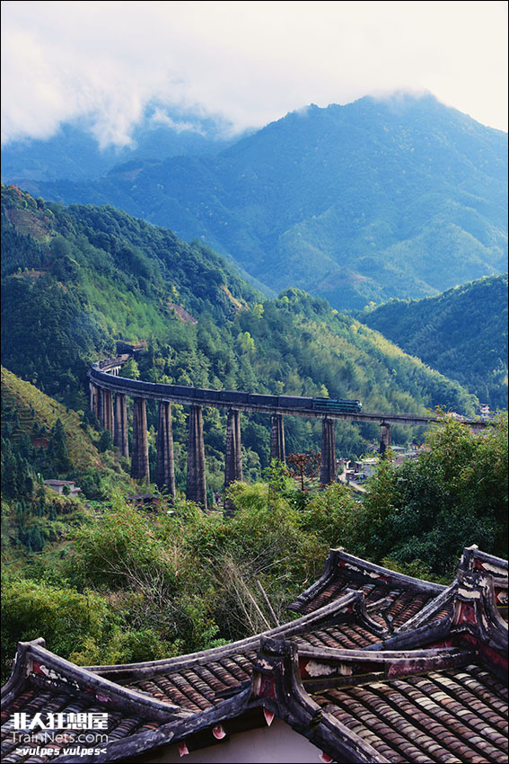 2017年4月。漳龙线。DF4B牵引货车通过尾厝大桥。
