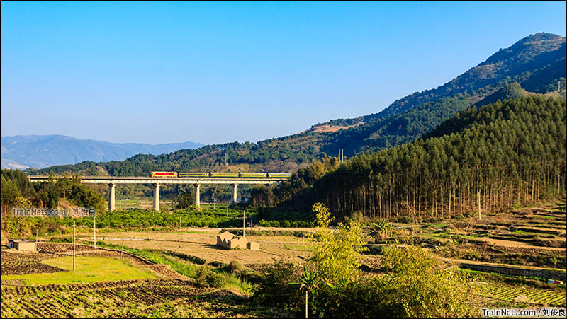 2017年1月28日,大年初一,贺州市贺街镇,DF4D牵引K1804次(湛江-武昌)行驶在洛湛线上。(图/刘俊良)