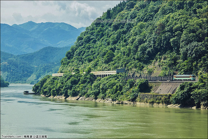 2017年5月13日。外南线。南局福段SS3牵引货列驶出富屯溪畔的棚洞。(图/梅育源)