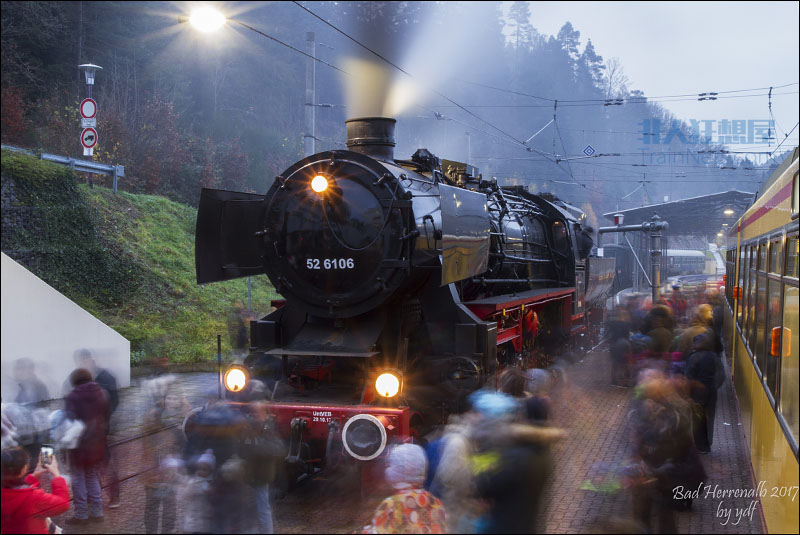 2017年11月。Albtal线蒸汽机车复活运转,52型蒸汽机车在终点站Bad Herrenalb加水。52型蒸汽机车诞生于二战期间,是著名的战争机车,前后共生产7000余台。(图/袁东方)