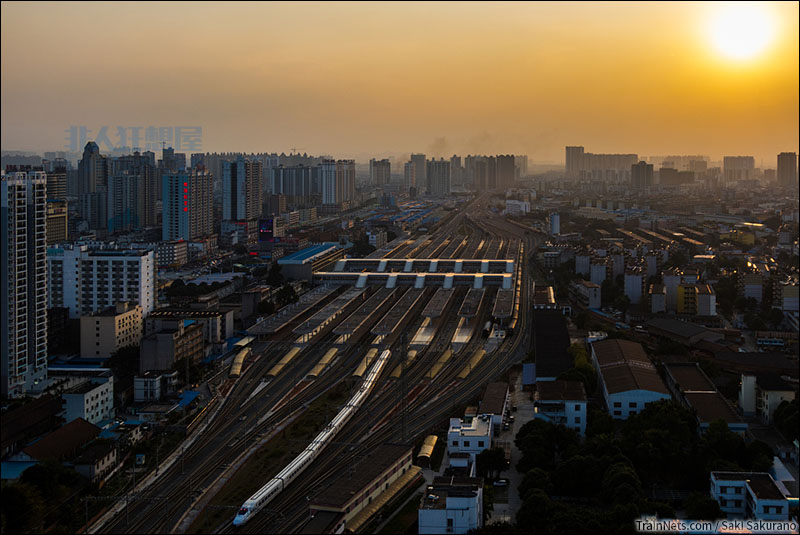2017年2月17日。南广线。夕阳下驶入南宁站的动车。(图/Tsukiou kumo)