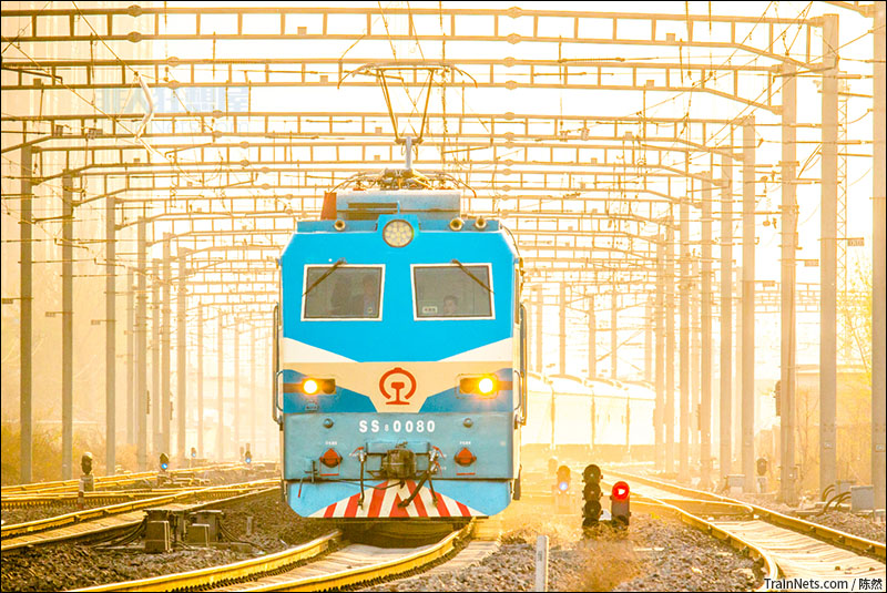 2016年3月。石家庄北站。邯郸段修的“重口味”韶山8牵引T254次(广州-天津)行驶在金色的夕阳中。(图/陈然)