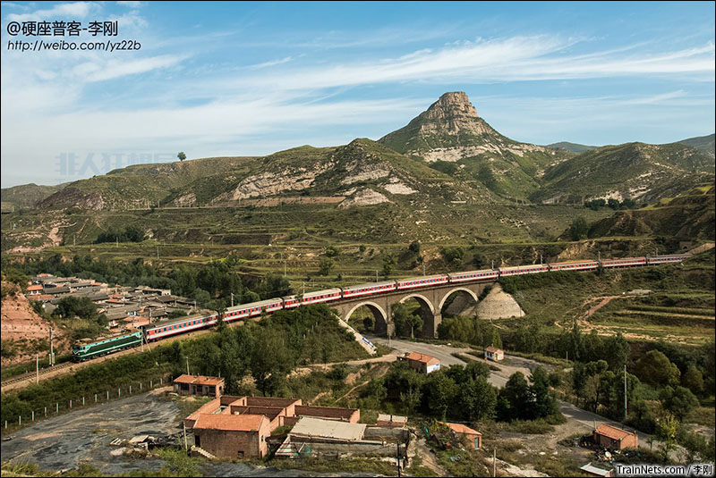 2014年9月。韶山1型电力机车牵引2604次(朔州-秦皇岛)列车通过北同蒲铁路瓦窑村展线。(图/李刚)