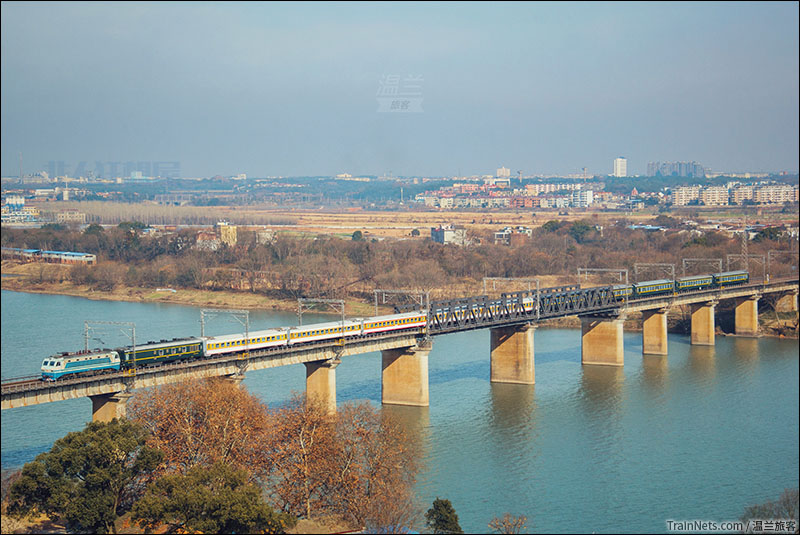2018年1月13日。南局南段SS8牵引K8721次(玉山-南昌)列车跨越贵溪信江大桥。(图/温兰旅客)