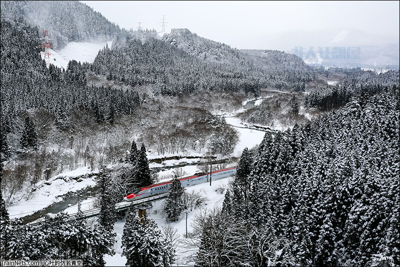 2018年2月12日,开往东京的E6系新干线沿生保内川蜿蜒前行。(图/心叶的仿若青空)