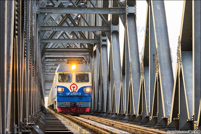 2018年4月6日。河北怀来官厅水库,1456次(呼和浩特-通辽)通过京包铁路88号桥(妫水河大桥)。(图/路上大团)