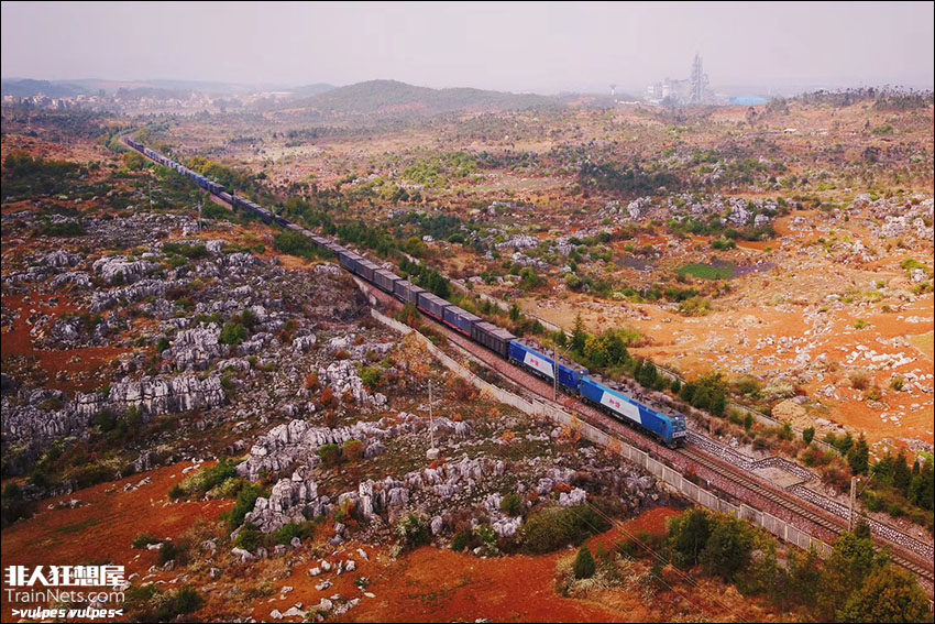 2018年3月。不只是罗平金色的油菜花田,春天的南昆铁路还有其他的惊喜。小站茂舍祖站旁,石林地貌和云南特有的红壤将大地妆点成一片艳丽的红色。