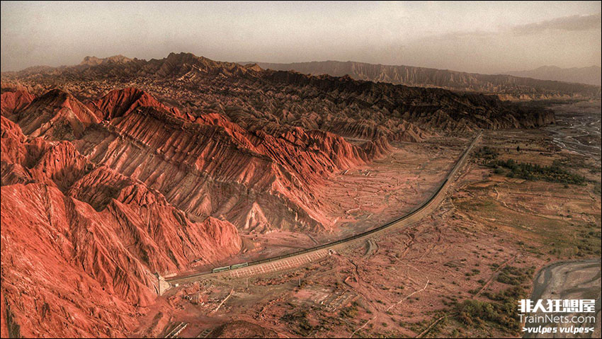 2017年10月。新疆维吾尔自治区阿克苏地区库车县库车河畔。“千嶂里,长烟落日孤城闭”,从南疆铁路库车站引出的库俄线,是一条以运煤为主的支线铁路。内燃机车轰鸣着驶过玄奘法师曾停留说法的苏巴什佛寺遗址,筑于唐代的盐水沟烽燧默默注视着远去的列车,汽笛声在如锋刃一般的红砂岩山谷中久久回荡。