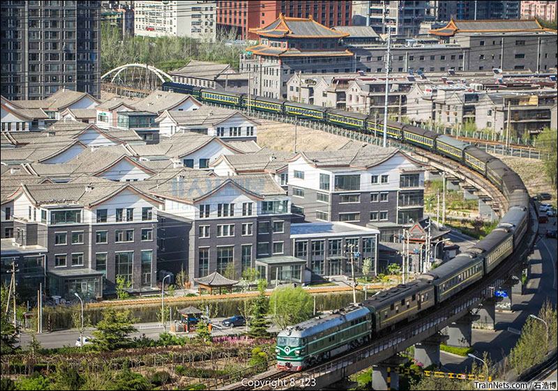 2018年4月。北京东北环线百子湾DF4B-9240牵引外放客车0K604次接近北京东站准备汇入京哈铁路。(图/石浩博)
