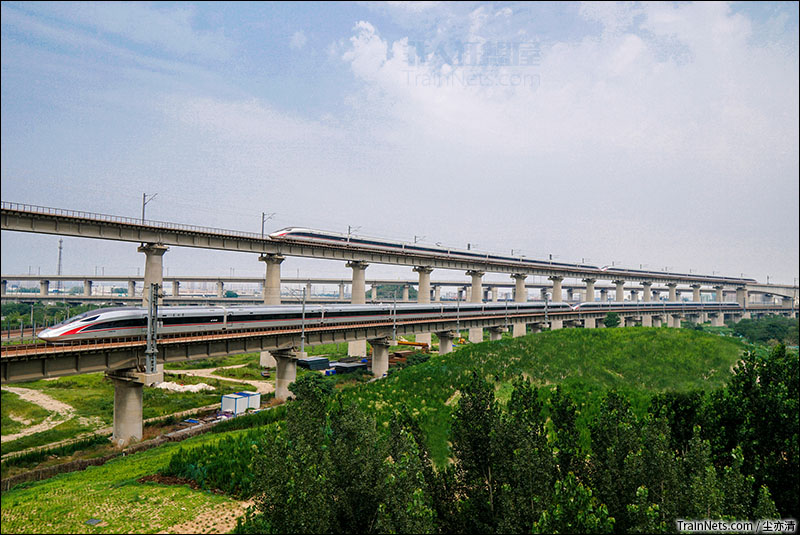 2018年6月30日。郑州。G96(广州南-兰州西)与G831次(兰州西-广州南)两组CR400AF的不期而遇。(图/尘亦清)