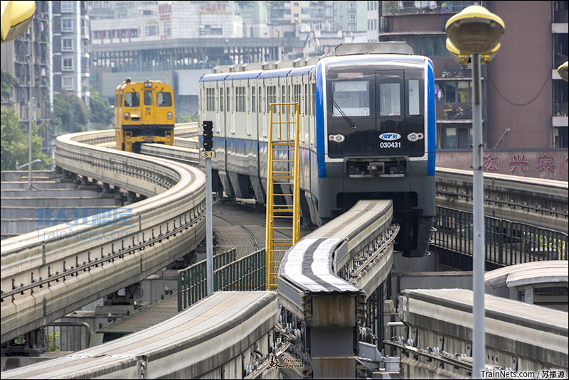 2018年7月24日。重庆轨交3号线四公里站,正在换向的区间列车,道岔正在缓缓移动。(图/苏振源)