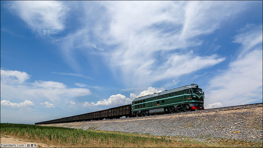 2018年6月29日。沙蔚铁路公司所属之东风4型7726号机车牵引31058次区段货物列车行走在张家口市蔚县白乐镇附近。(图/赵家乐)