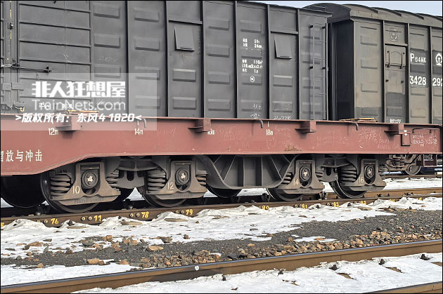 2026年1月。哈尔滨。D22A型长大平车。转向架。(图/东风4 1820)