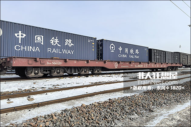 2026年1月。哈尔滨。D22A型长大平车。图/东风4 1820)