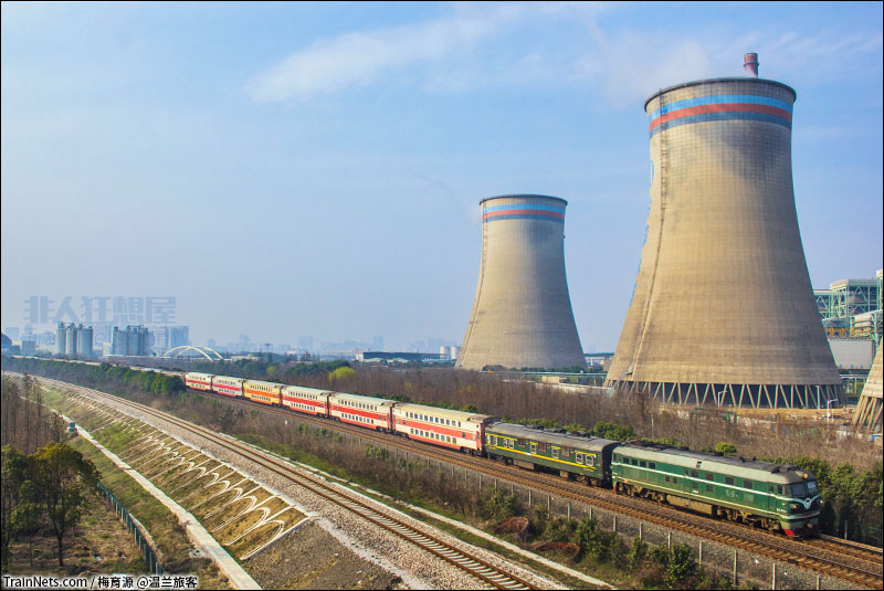 2018年3月。宣杭线。春运末梢,末班郑局双层临客K4073次从长兴热电厂旁驶过。(图/温兰旅客)