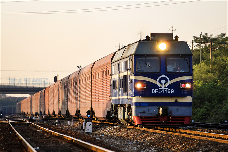 2018年10月31日。广局明星车DF4C-4169牵引双层汽车运输车经广茂线三水西站出发前往京广线郭塘站。(图/衡局东段)