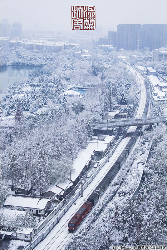 2018年12月9日。沪昆线。T31次(北京-杭州)列车穿行在冬雪后银装素裹的杭州城中,这个车次将在一个月后成为历史。(图/温兰旅客)