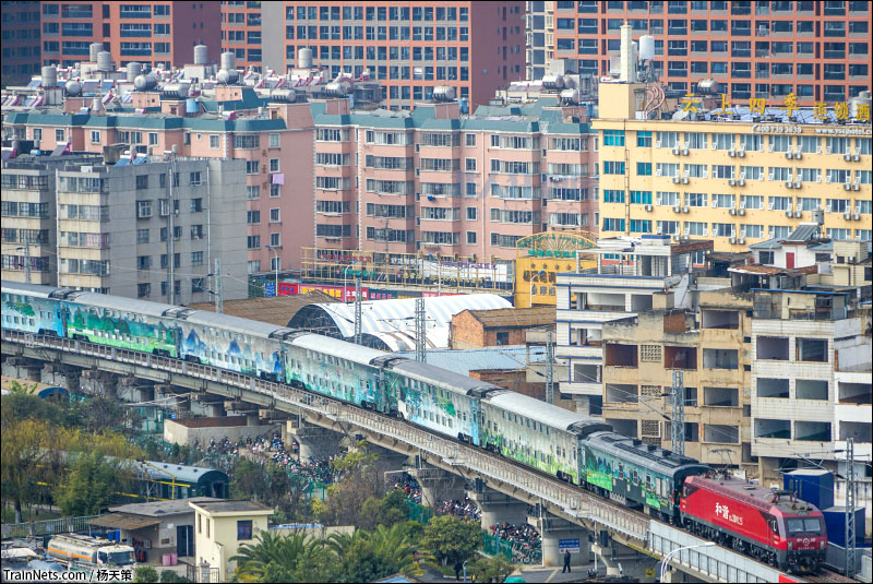 2018年1月21日。春运首日。丽江号双层车底担当临客K6118次(昆明-曲靖)驶出昆明站。(图/杨天策)