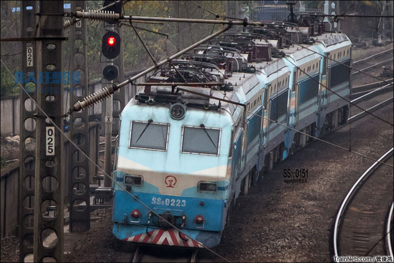 2019年1月21日。广东韶关。长沙机务段开50021次马坝站4道通过,50021次由5台长沙机务段韶山8组成,解决广州机务段春运用车紧张问题。(图/管俊鸿)
