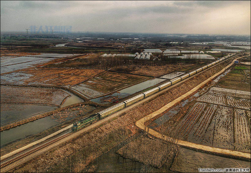 2019年2月。ND5牵引春运临客通过水蚌线水家湖联络线。(图/做奥迪的王大师)
