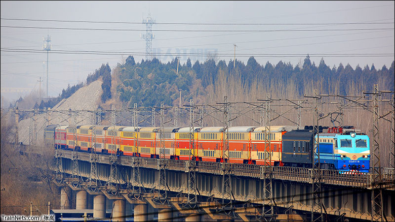 2018年2月28日。京局邯段SS8-0118牵引春运临客K5211次列车(北京西-邯郸)通过西长线后吕村。(图/张岚)