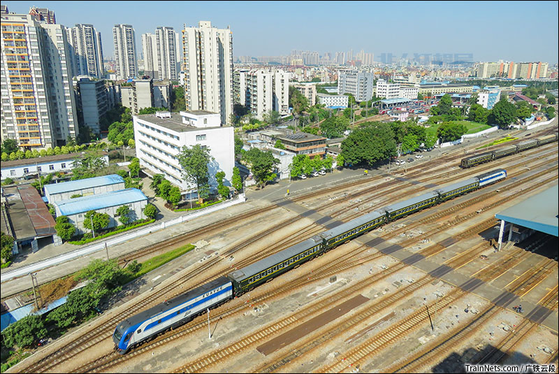 2018年10月,广东广州。广州客技站。K9049次(广州-信宜)车底出库。(图/广铁云段)