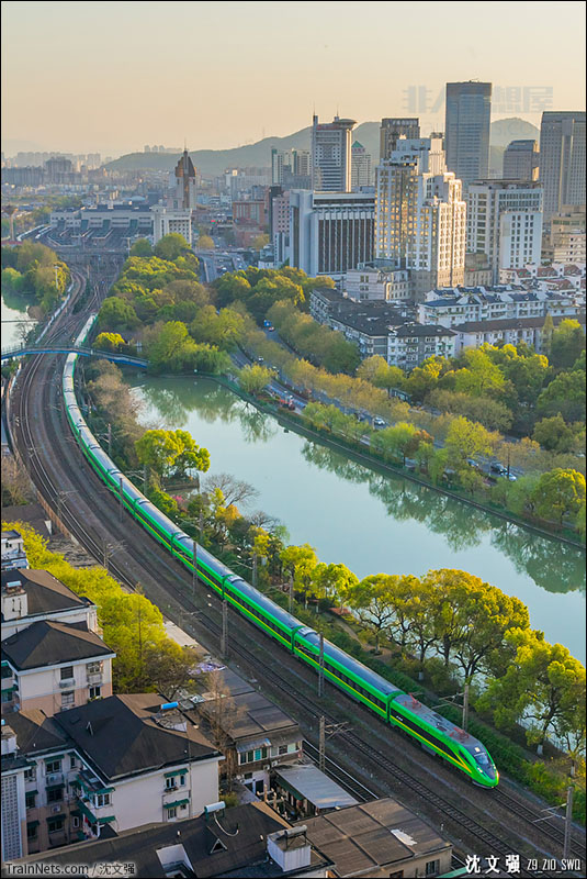 2019年4月1日。由CR200J动力集中动车组执行的D718次(杭州-北京)驶出杭州站。(图/沈文强)
