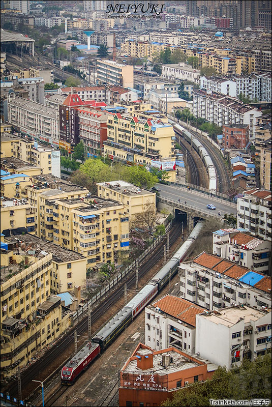 2019年4月5日17:28。HXD1D-0556牵引K234次(上海-石家庄)蚌埠站出站,即将驶入京沪线淮河桥。(图/王子宁)