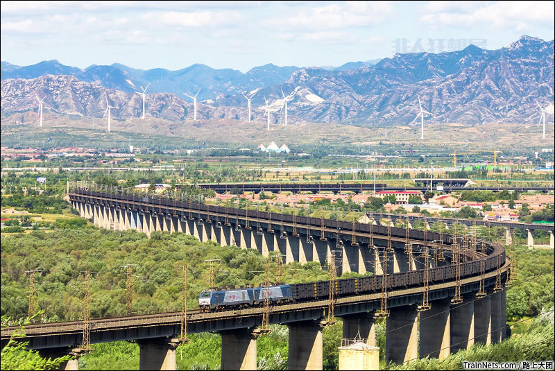2018年9月15日。大秦HXD2重载列车通过S形弯道的怀来永定河大桥。(图/路上大团)