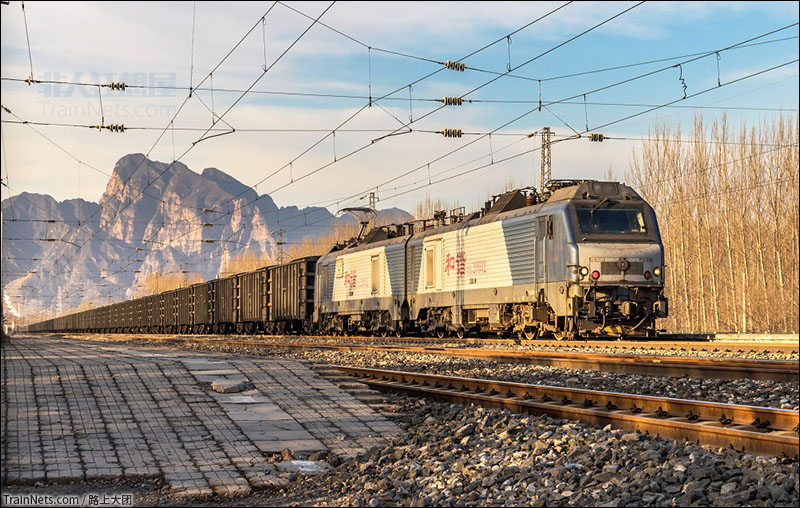 2018年11月18日。HXD2牵引大秦铁路2万吨重载列车通过延庆北站。(图/路上大团)