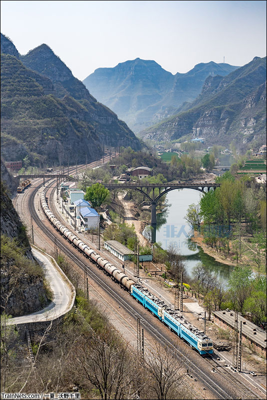 2013年4月。太焦线上的重联SS4G牵引罐列行驶在太行山中的峡谷之中。