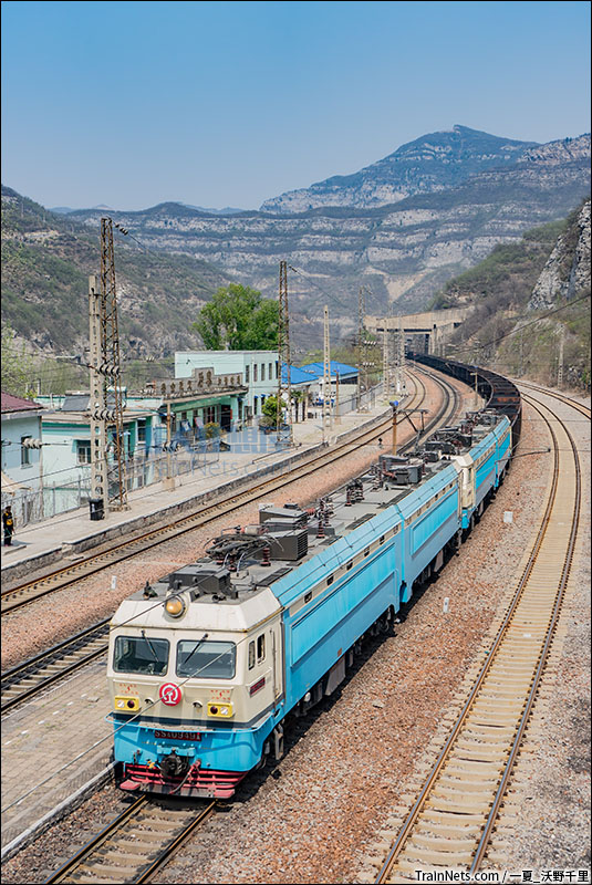 2013年4月。重联SS4G牵引煤列通过南太焦线小站。