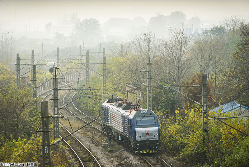 2018年11月25日。雾霾笼罩华东,宁东HXD2B正单机回库。