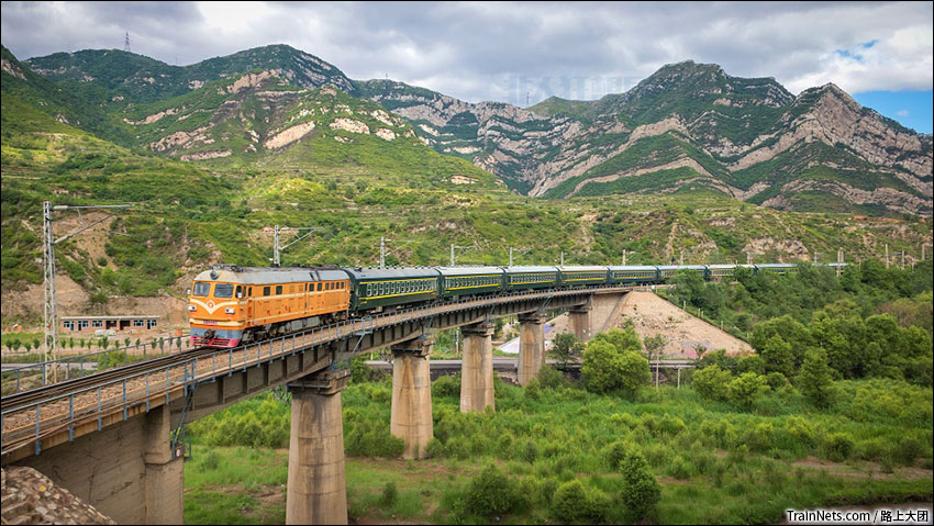 2019年7月6日。太局太段DF4BK牵引“矿工号”8163次(轩岗-原平)北同蒲线芦庄站发车,行驶在云中山区中。