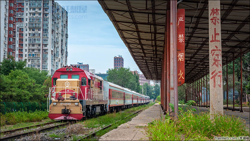2019年7月9日。北京。北京101线。DF7G牵引几乎全红的Y535/6次列车车底出库,通过衙门口站。