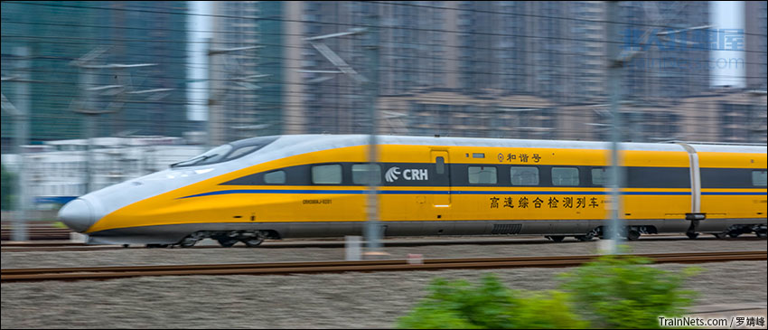 2019年6月17日。江西南昌。CRH380AJ-0201执行沪昆高铁检测任务途径南昌西站。
