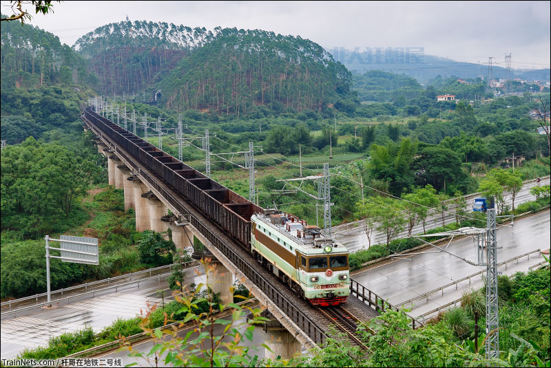 2019年6月1日。南钦铁路电气化后的第一天,SS3牵引货列通过南钦线良凤江大桥。