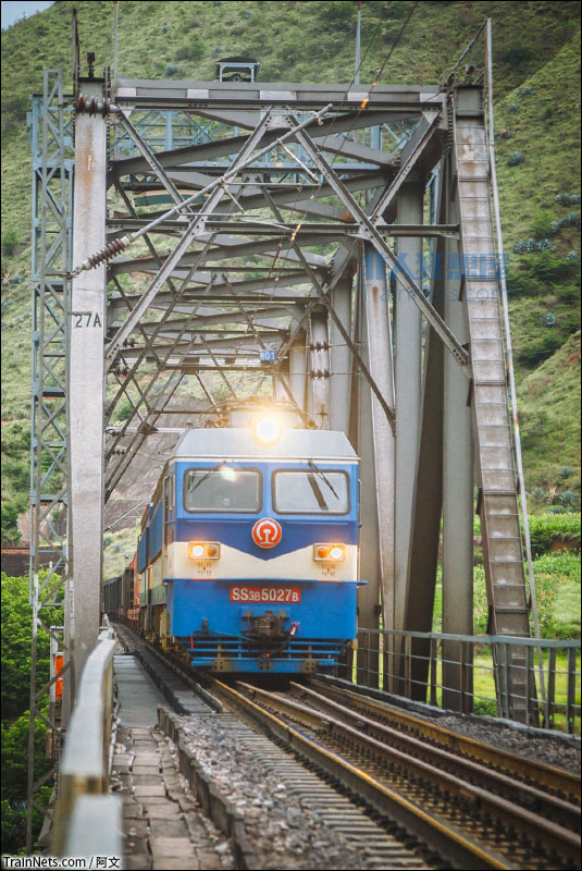 2018年8月。货车驶过成昆线六渡河展线下坝大桥。