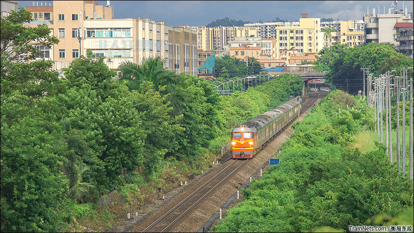 2019年8月1日。DF4K-2612牵引客车K366次(昆明-广州)接近佛山站。