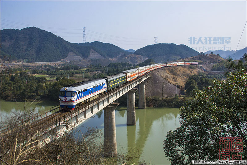 2016年2月。白兰瓜回送武局双层春运临客车底跨越武义江。