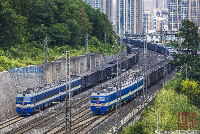 2019年8月。沪昆线。六盘水南环线曹家湾车站中,等待信号的SS3B货列们。