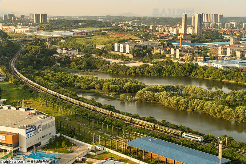 2019年7月。黄昏中的韶八牵引18节大列飞驰在京广线上。