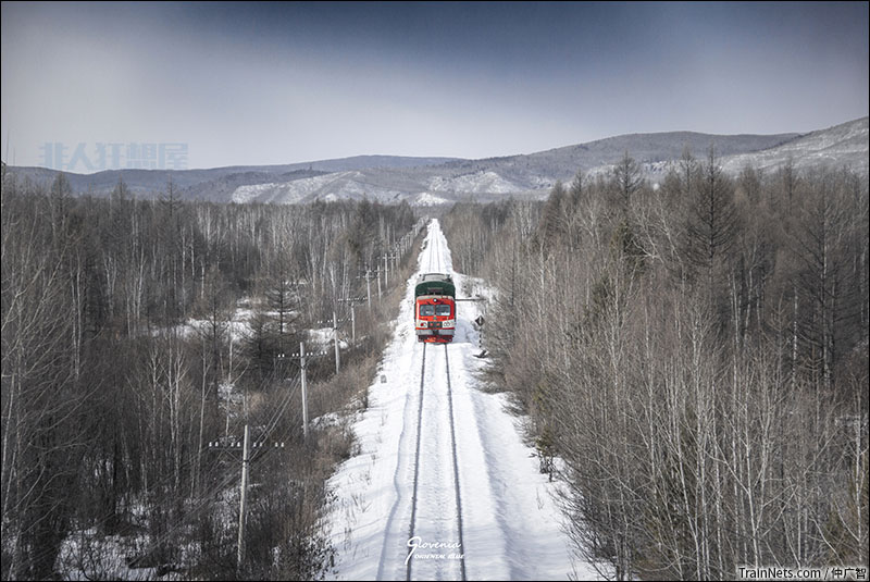 2017年2月14日。林碧线轨道车是茫茫雪原中最艳丽的一点红。
